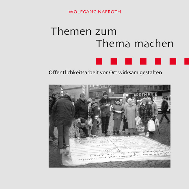 Man könnte seine Inhalte überaus anschaulich im öffentlichen Raum ins Gespräch bringen und das sogar mit einfachsten Mitteln. Es gibt vielfältige Instrumente, die deutlich mehr Menschen zum Gespräch verweilen lassen, als es jeder Infostand möglich macht. Das Prinzip und viele Ausführungsvarianten stellt diese Veröffentlichung vor.