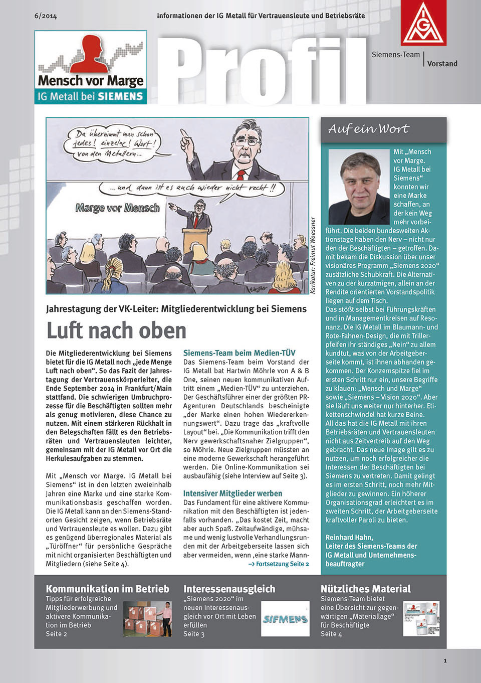 Profil, Informationen der IG Metall für Vertrauensleute und Betriebsräte von Siemens, 6/2014